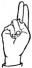 На ћирилици написано БУДИМИР ВЕХТИЋ састоји се из 13 слова [?]. Исписано ћириличном једноручном азбуком за глувонеме: